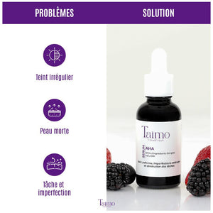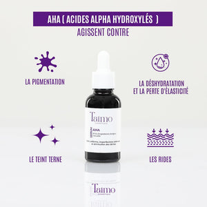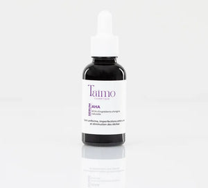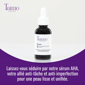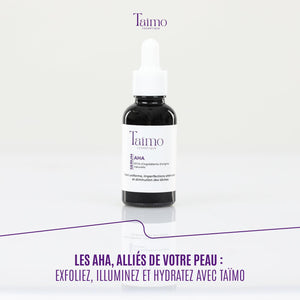 Le Sérum AHA de Taïmo Cosmétique exfolie en douceur pour lisser la peau, unifier le teint et estomper les imperfections. Grùce aux acides AHA, il élimine les cellules mortes, révÚle un éclat immédiat et améliore la texture de la peau. Parfait pour retrouver une peau plus douce, lumineuse et homogÚne, naturellement.